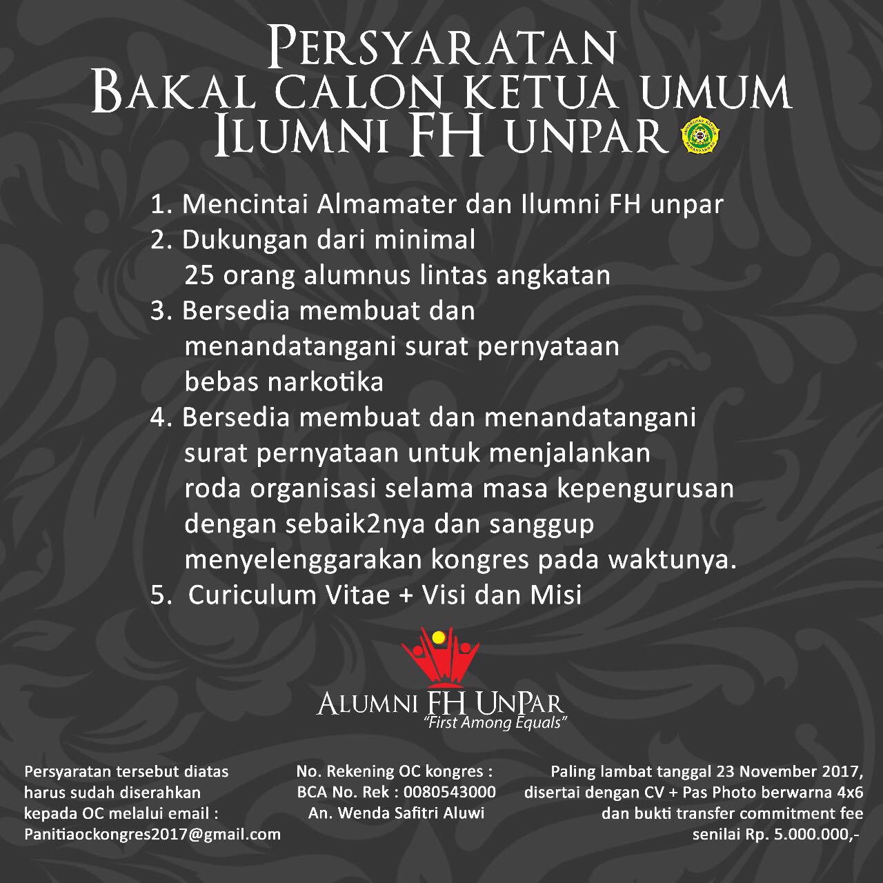 PERSYARATAN BAKAL CALON KETUA UMUM ILUMNI FAKULTAS HUKUM UNPAR